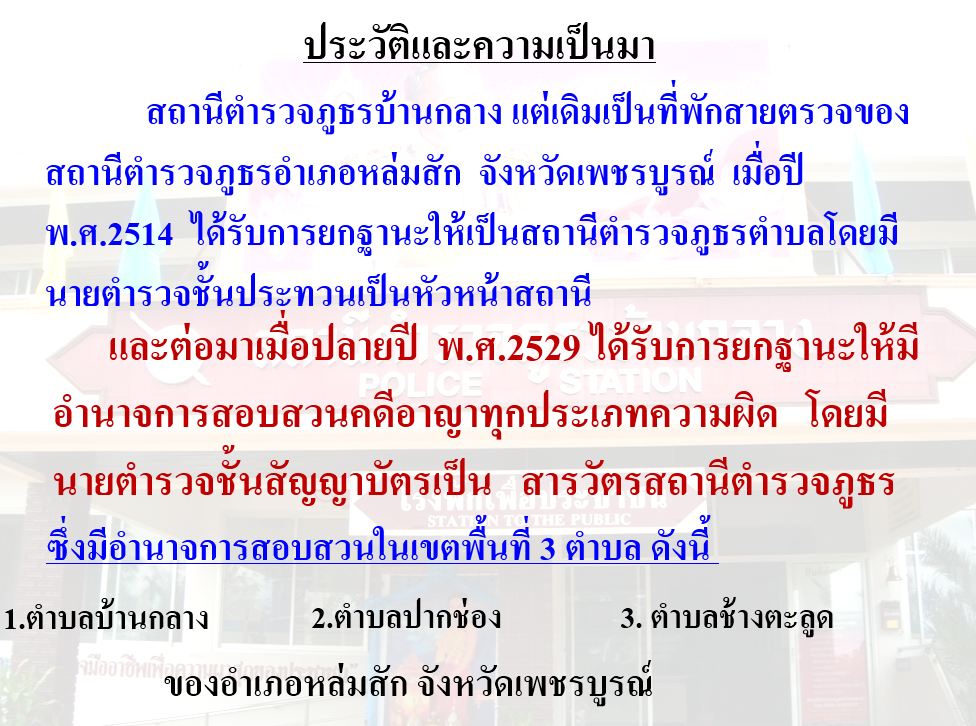 ประวัติความเป็นมาของสถานีตำรวจภูธรบ้านกลาง