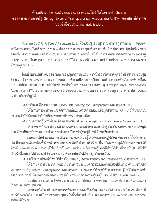 การปฏิบัติงานทุกสายงาน ประจำทุกเดือน