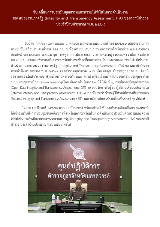 พ.ต.อ.ธีรพงศ์ ผลนาค ผกก.สภ.บ้านกลาง ร่วมประชุมรับมอบนโยบายของผู้ว่าราชการจังหวัดเพชรบูรณ์